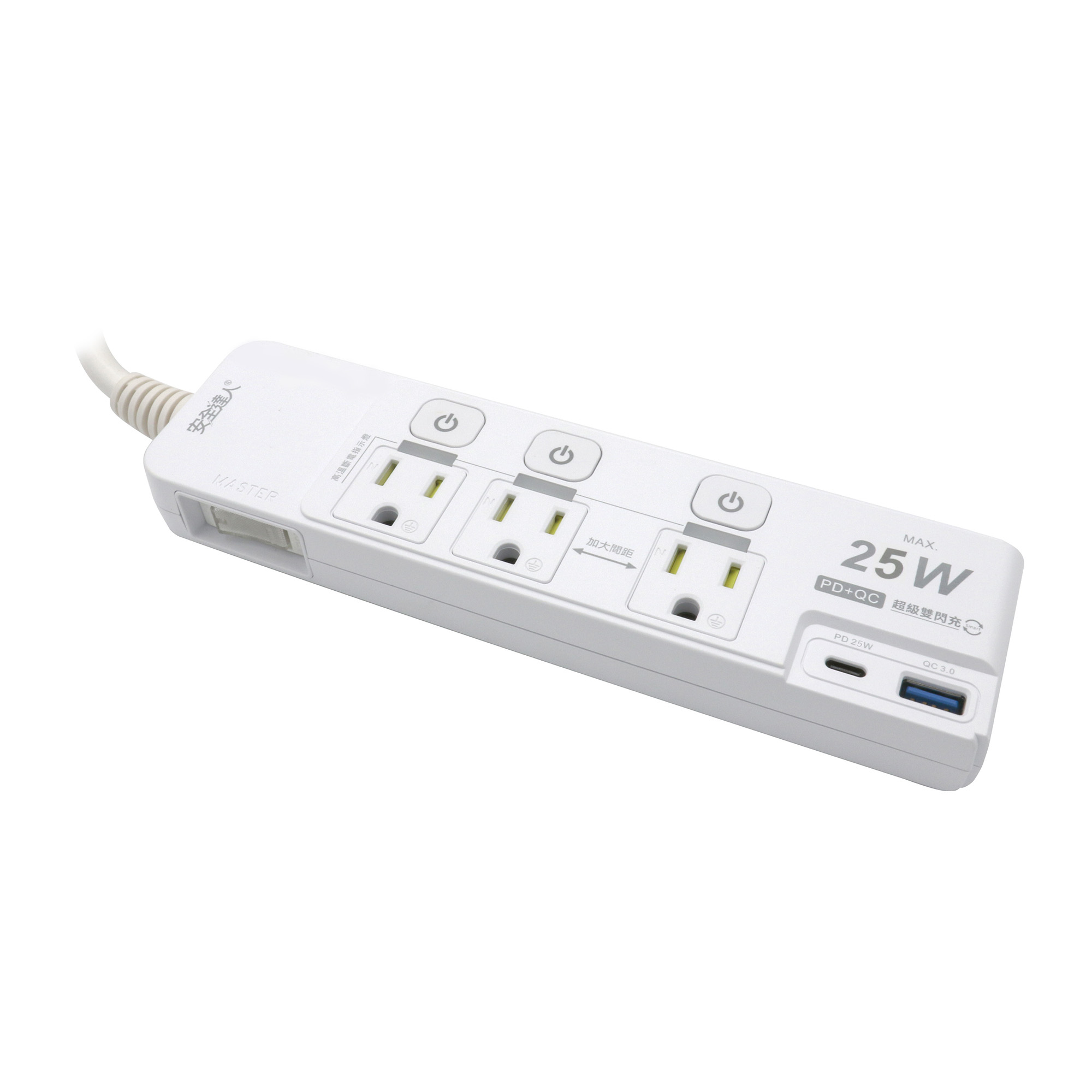 【安全達人C-81P25NC】4開3插3P 25W USB超級閃充延長線