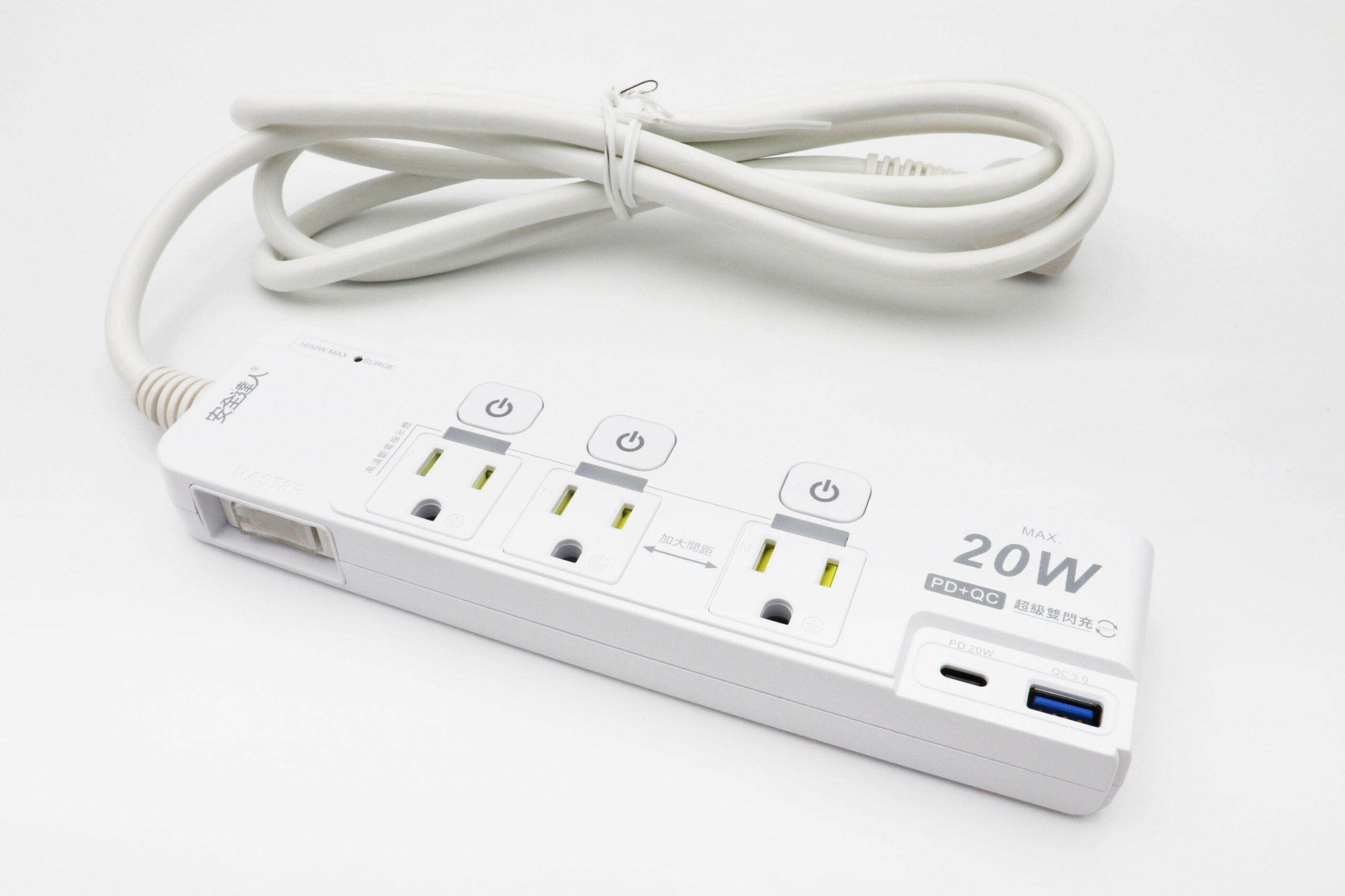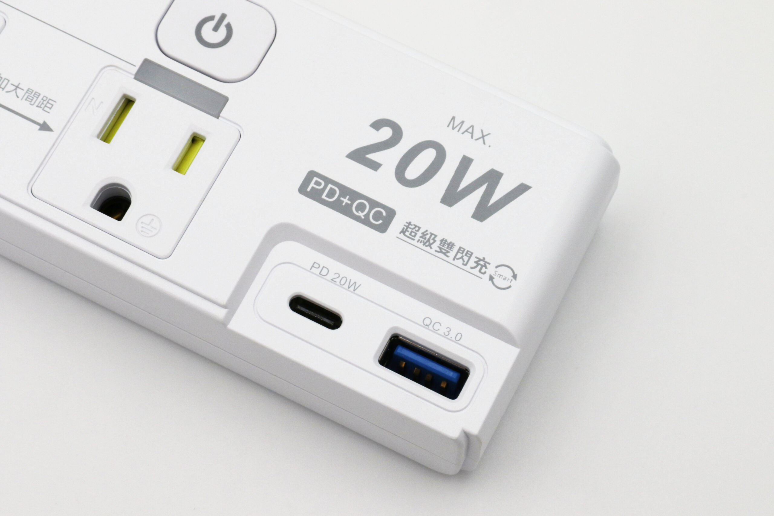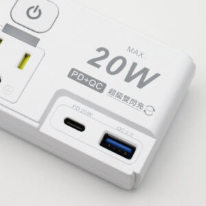 ◆產品規格:3口,3孔,PD20W(Type-C)+QC3.0(Type-A)