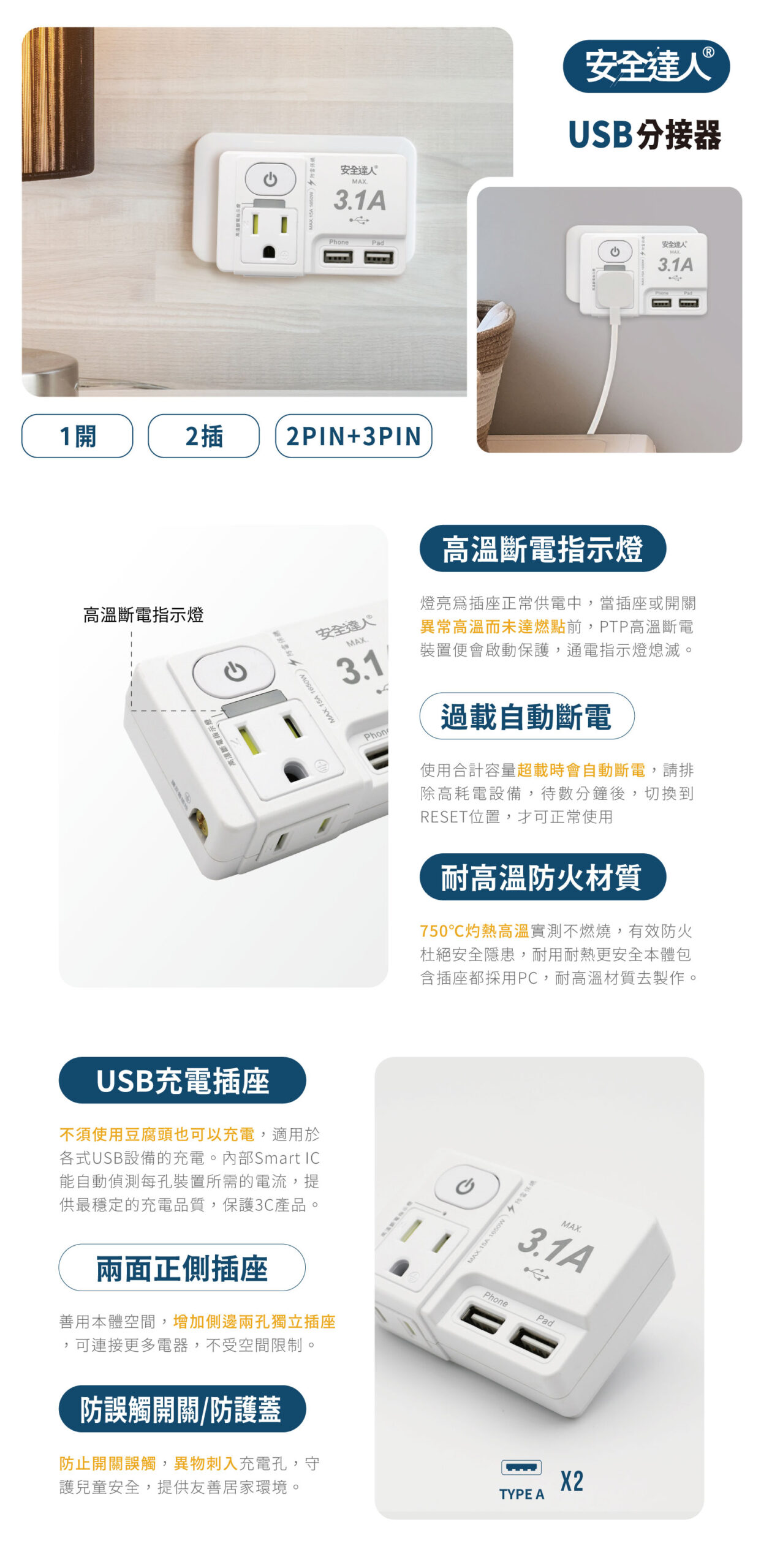 分類: USB分接器(壁插), 安全達人系列