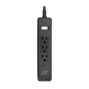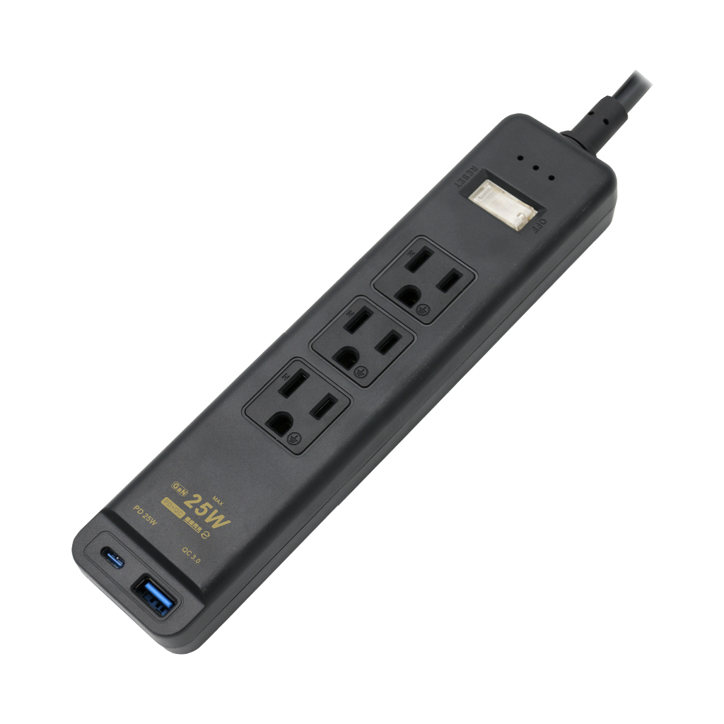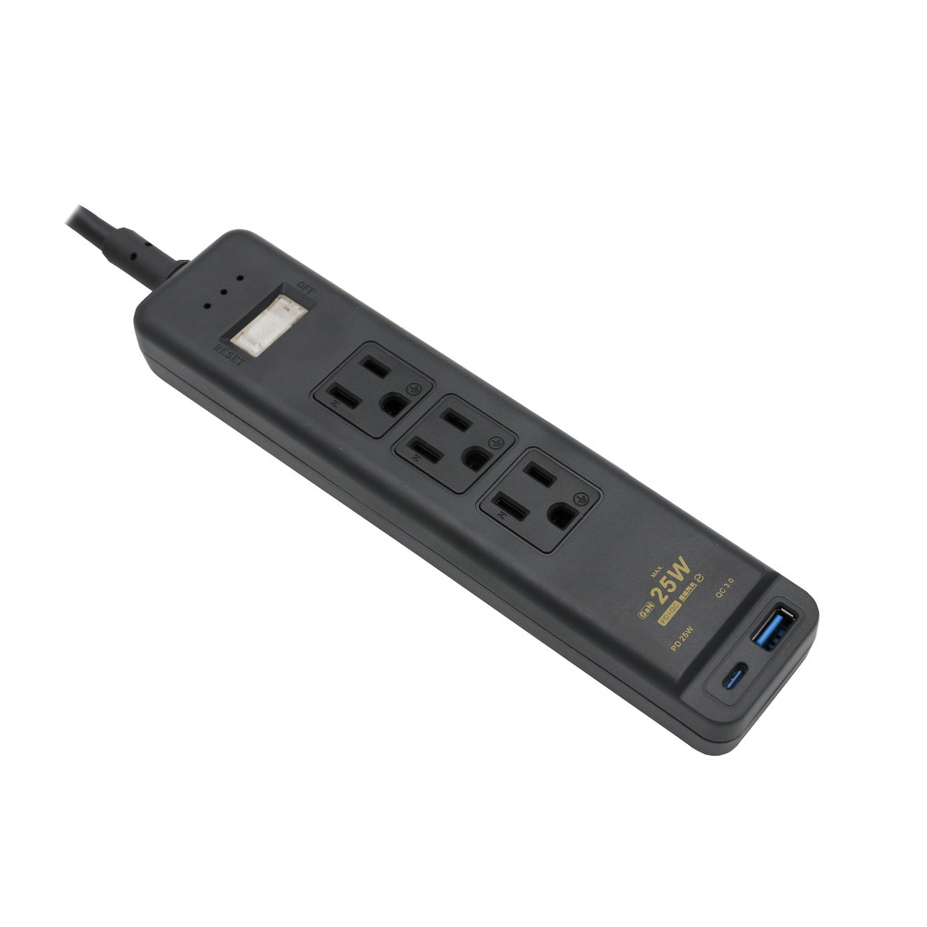 ◆產品規格:3口,3孔,PD25W(Type-C)+QC3.0(Type-A)